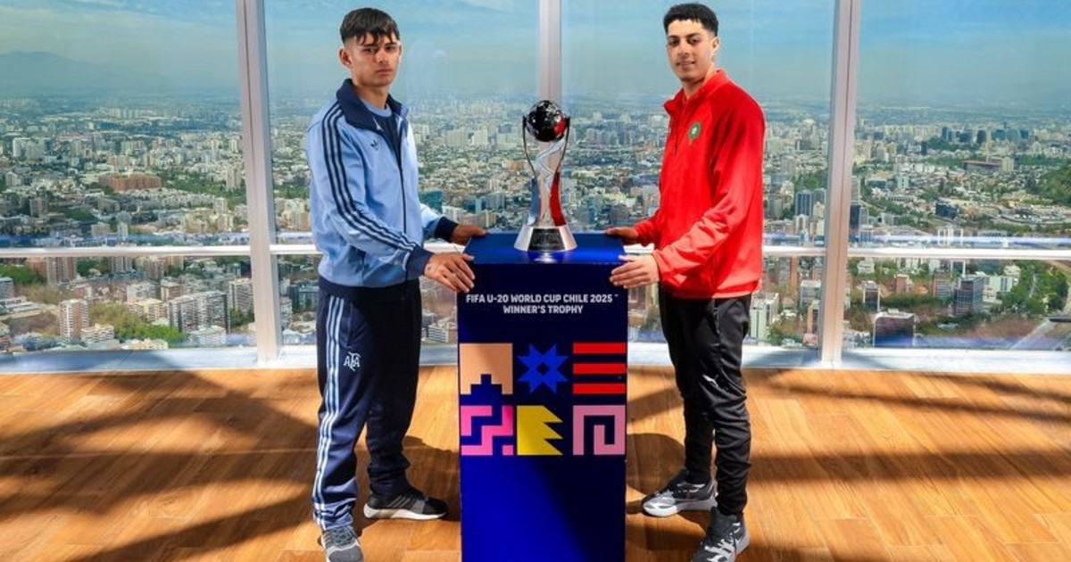 Una imagen que quieren repetir: los capitanes de Argentina y Marruecos posaron con el trofeo del Mundial Sub 20