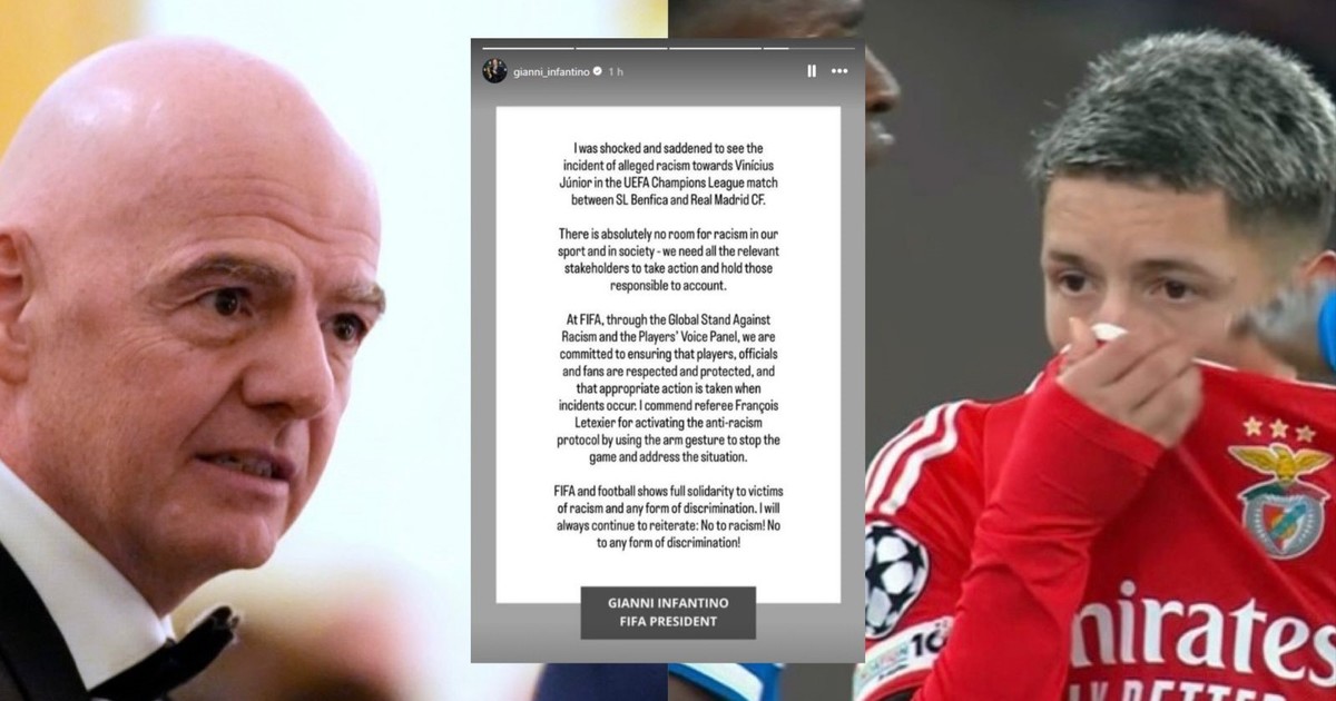 Infantino sobre el caso Vinícius-Prestianni: "No hay lugar para el racismo en el fútbol ni en la sociedad"